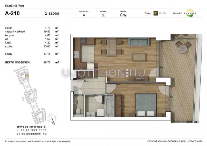 2 szobás 48 m2-es Lakás Sundell Port - Budapest XI. kerület, Albertfalva, Papp Elemér utca 6