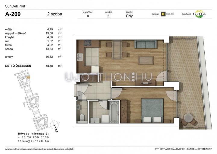 2 szobás 48 m2-es Lakás Sundell Port - Budapest XI. kerület, Albertfalva, Papp Elemér utca 6