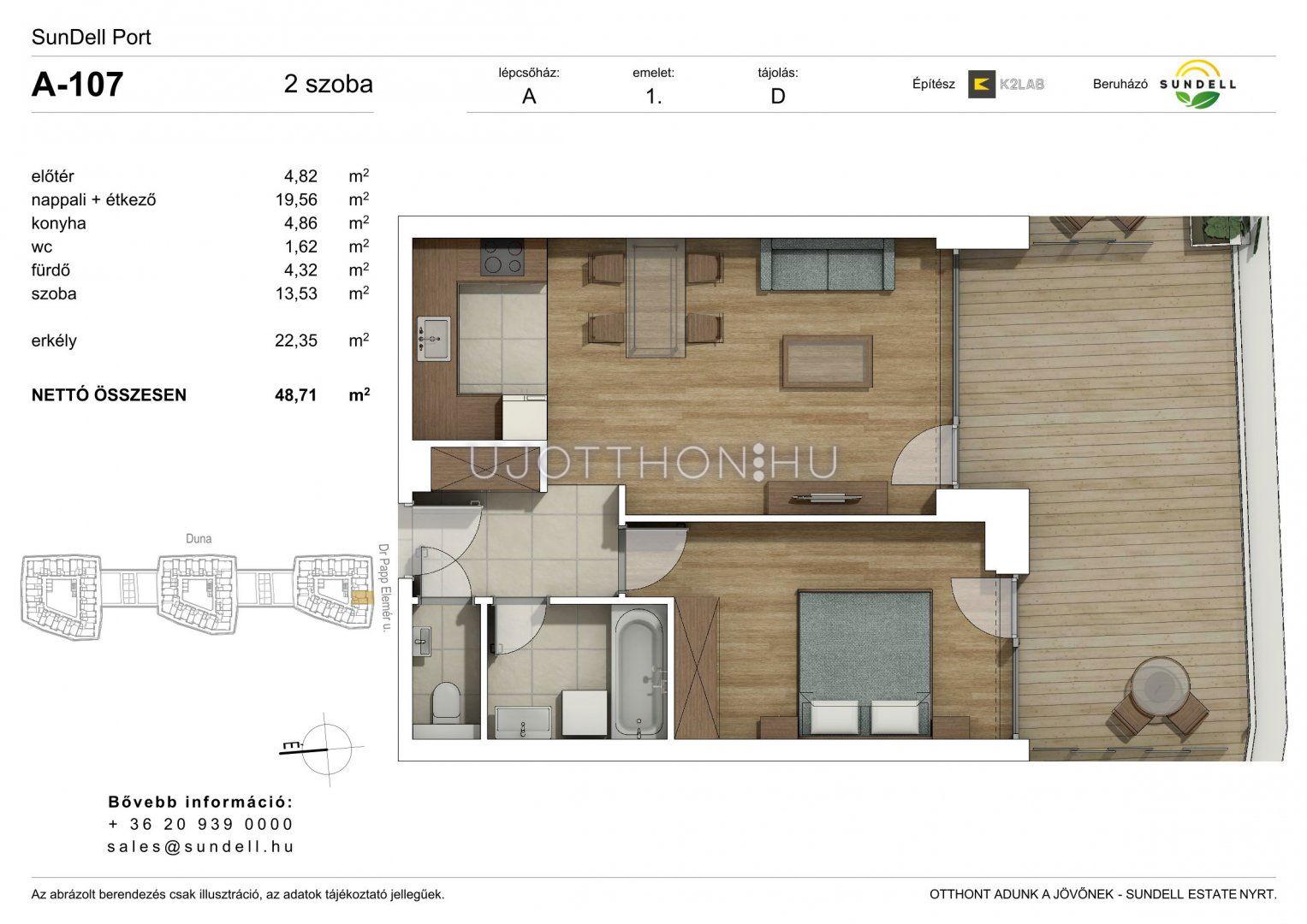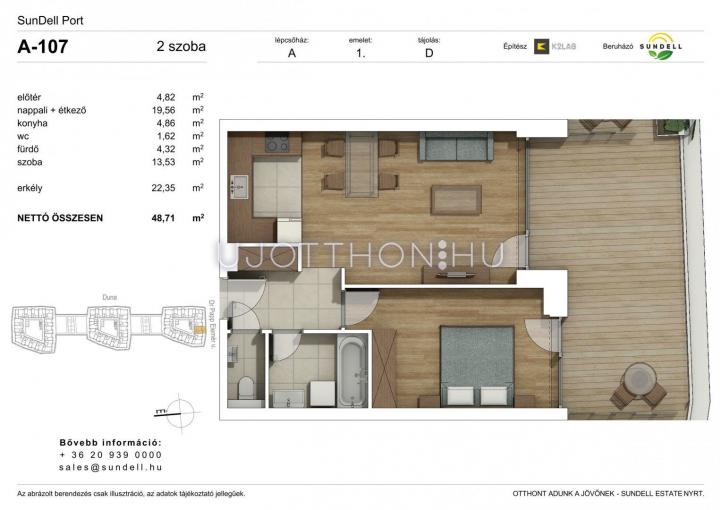 2 szobás 48 m2-es Lakás Sundell Port - Budapest XI. kerület, Albertfalva, Papp Elemér utca 6