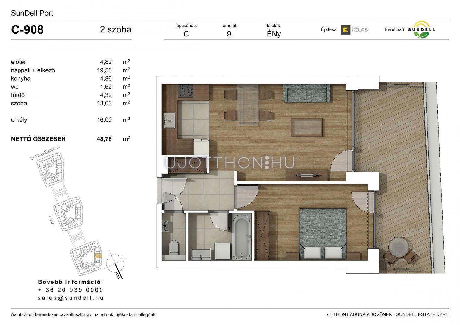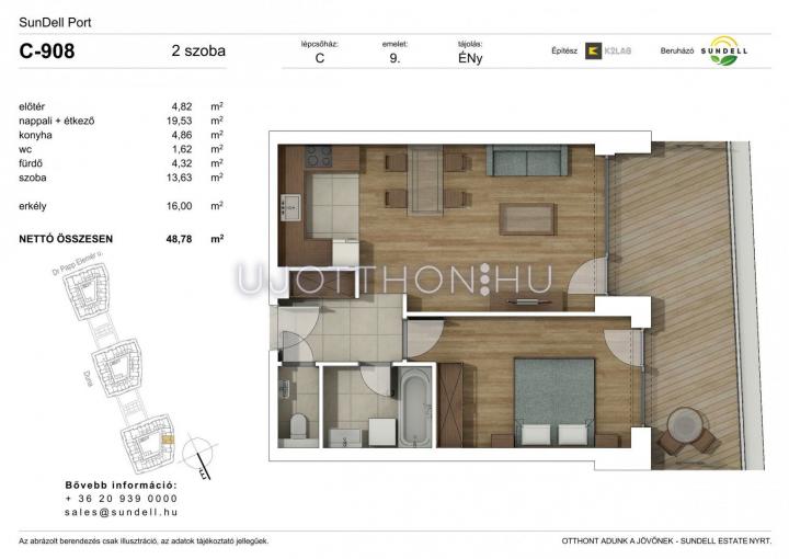 2 szobás 48 m2-es Lakás Sundell Port - Budapest XI. kerület, Albertfalva, Papp Elemér utca 6