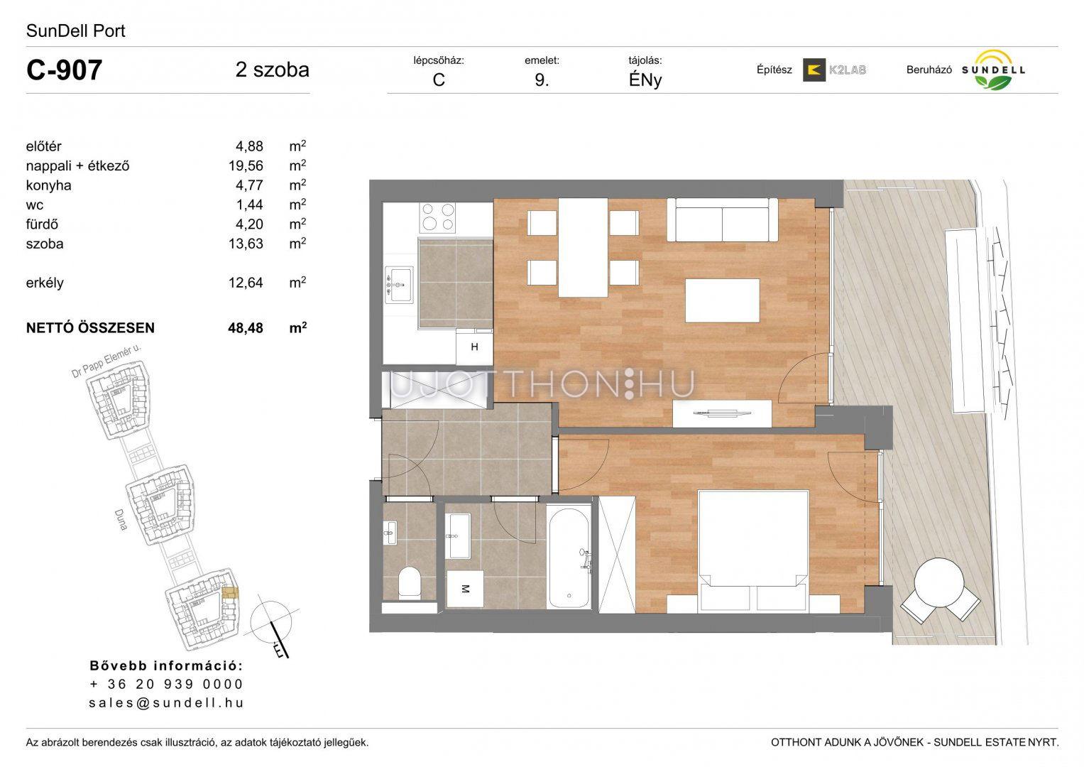 2 szobás 48 m2-es Lakás Sundell Port - Budapest XI. kerület, Albertfalva, Papp Elemér utca 6