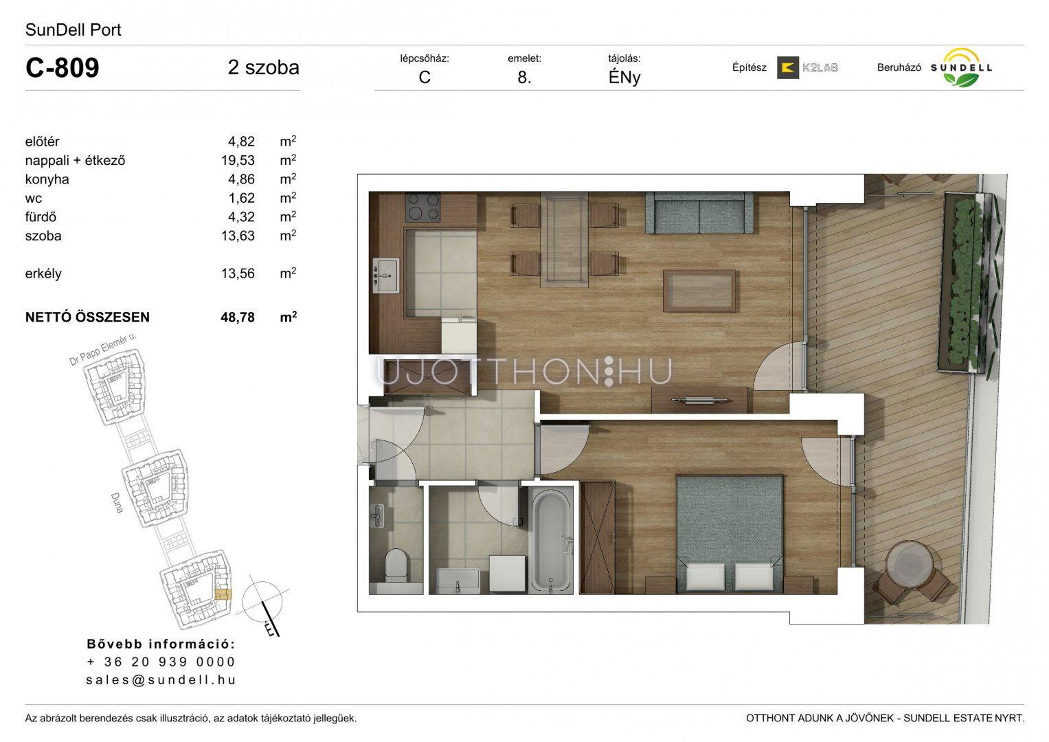 2 szobás 48 m2-es Lakás Sundell Port - Budapest XI. kerület, Albertfalva, Papp Elemér utca 6