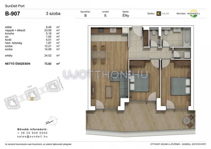 3 szobás 73 m2-es Lakás Sundell Port - Budapest XI. kerület, Albertfalva, Papp Elemér utca 6