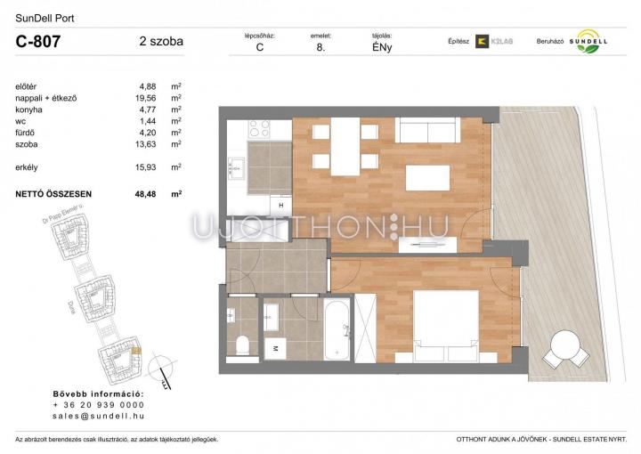 2 szobás 48 m2-es Lakás Sundell Port - Budapest XI. kerület, Albertfalva, Papp Elemér utca 6