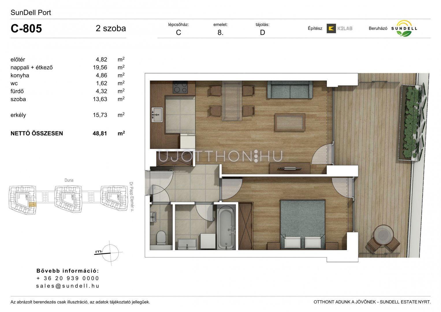 2 szobás 48 m2-es Lakás Sundell Port - Budapest XI. kerület, Albertfalva, Papp Elemér utca 6