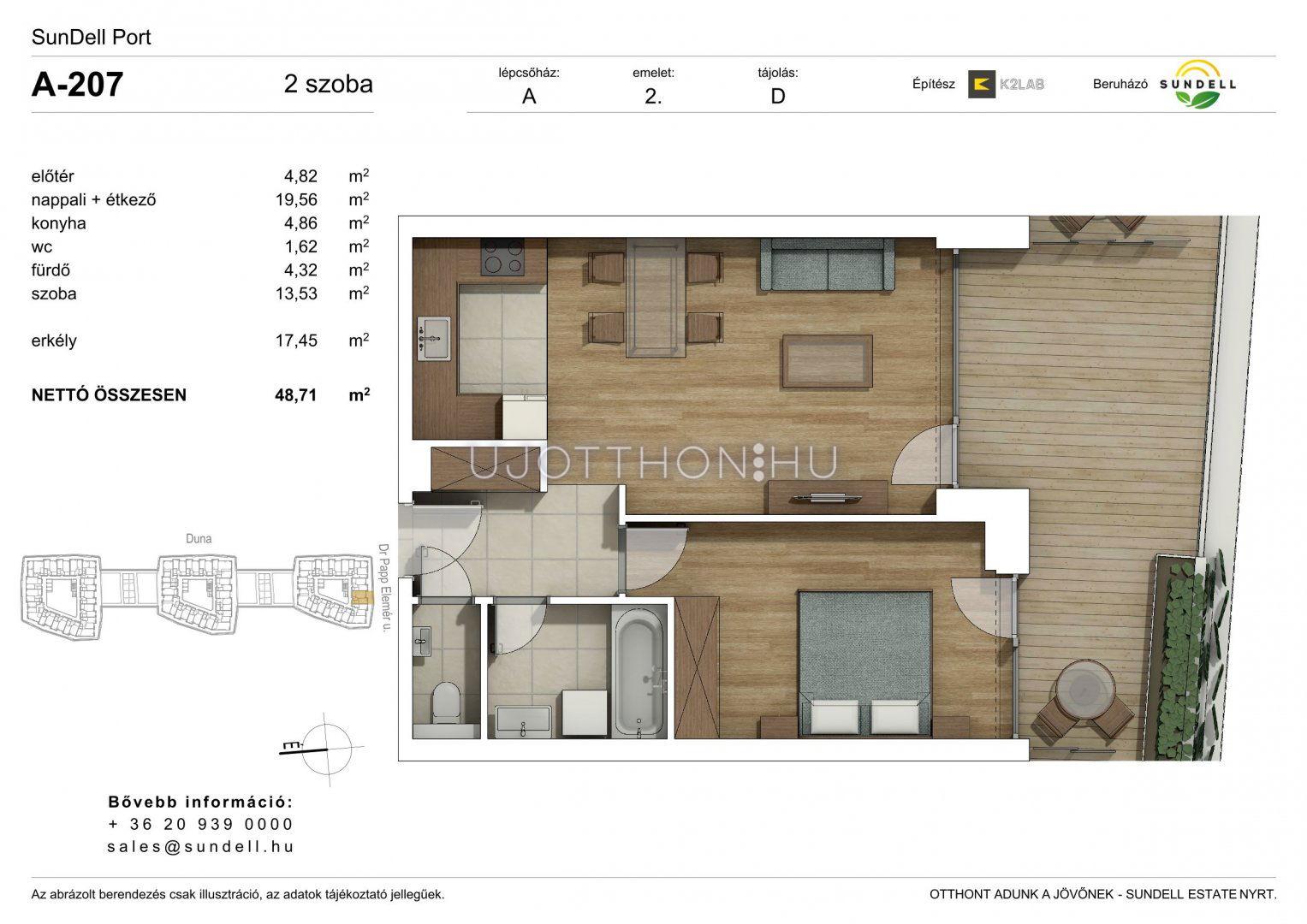 2 szobás 48 m2-es Lakás Sundell Port - Budapest XI. kerület, Albertfalva, Papp Elemér utca 6