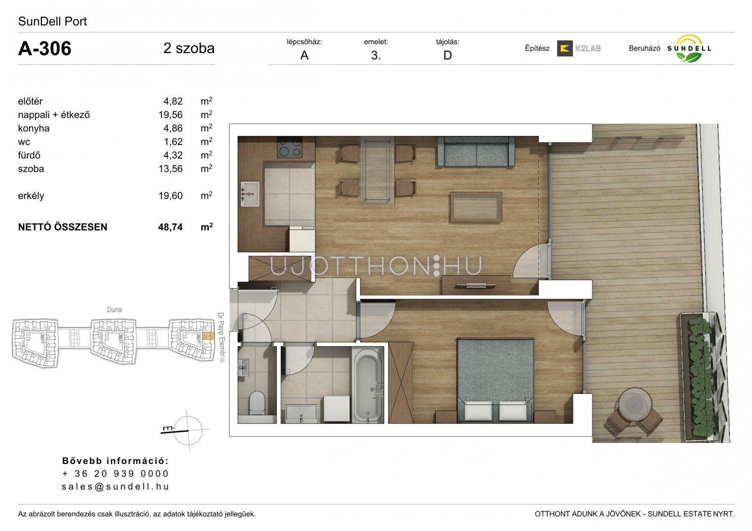 2 szobás 48 m2-es Lakás Sundell Port - Budapest XI. kerület, Albertfalva, Papp Elemér utca 6