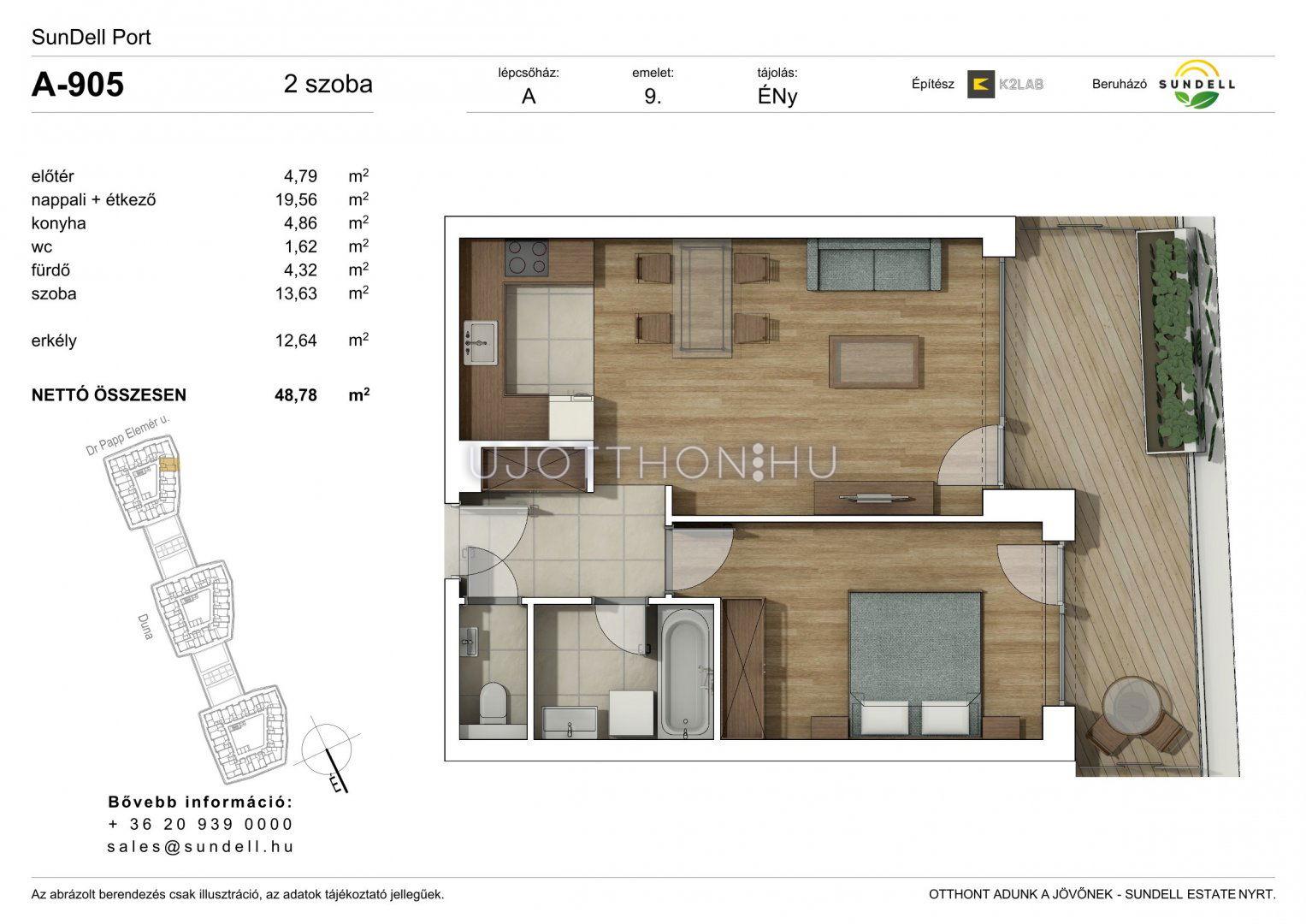 2 szobás 48 m2-es Lakás Sundell Port - Budapest XI. kerület, Albertfalva, Papp Elemér utca 6