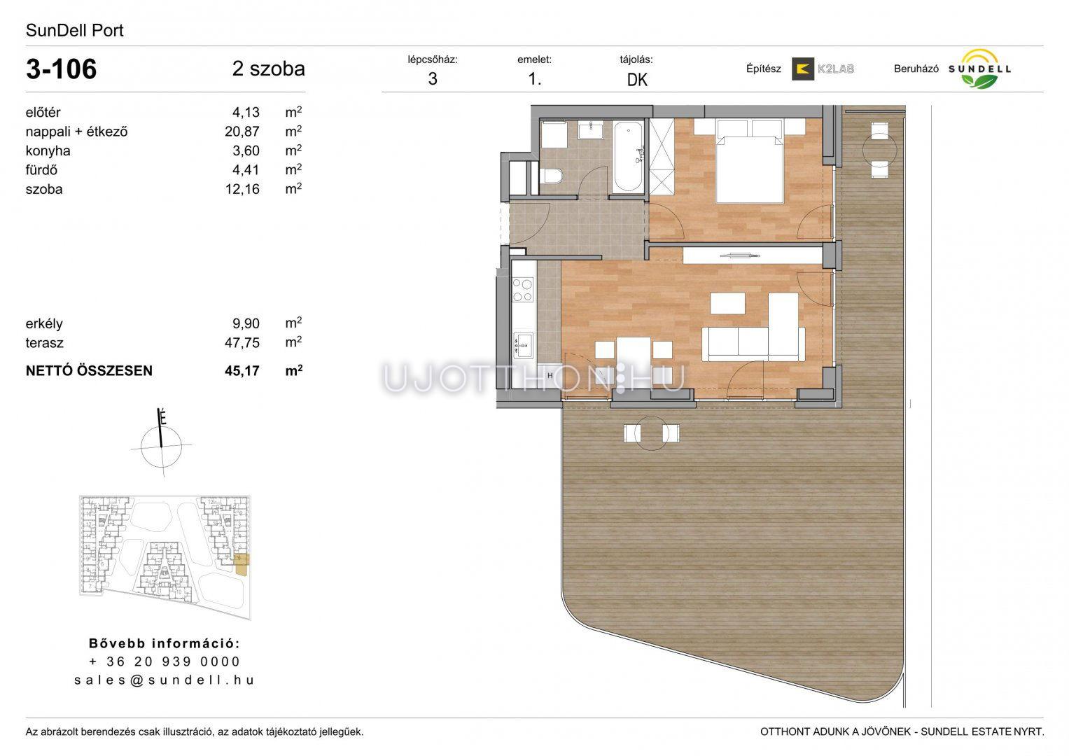 2 szobás 45 m2-es Lakás Sundell Port - Budapest XI. kerület, Albertfalva, Papp Elemér utca 6