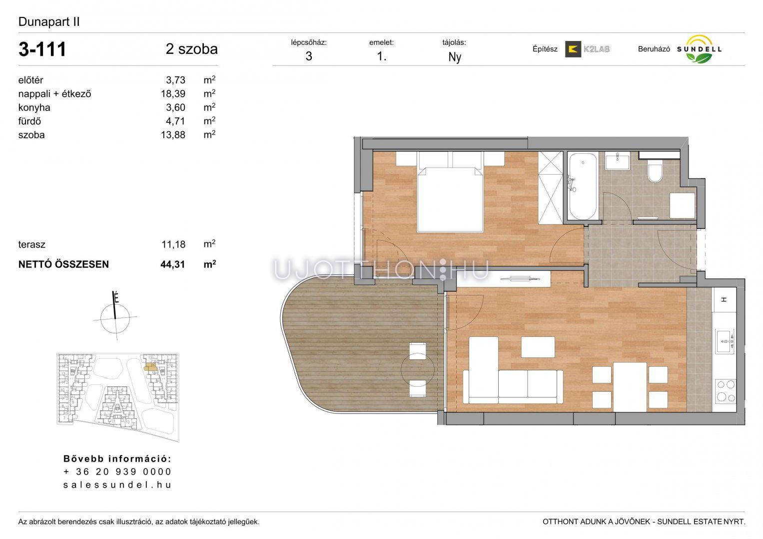 2 szobás 44 m2-es Lakás Sundell Port - Budapest XI. kerület, Albertfalva, Papp Elemér utca 6