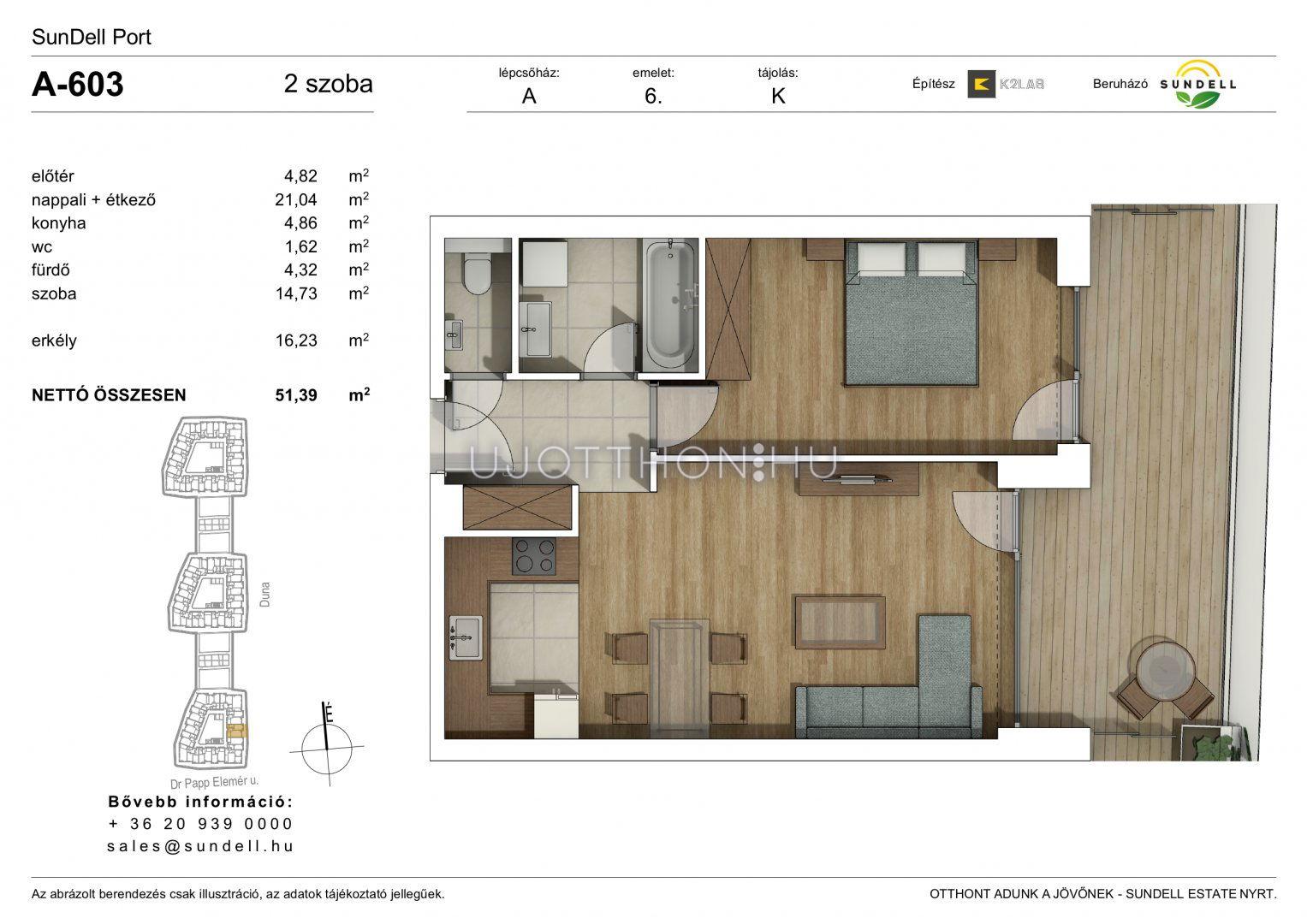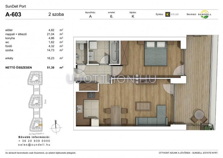 2 szobás 51 m2-es Lakás Sundell Port - Budapest XI. kerület, Albertfalva, Papp Elemér utca 6