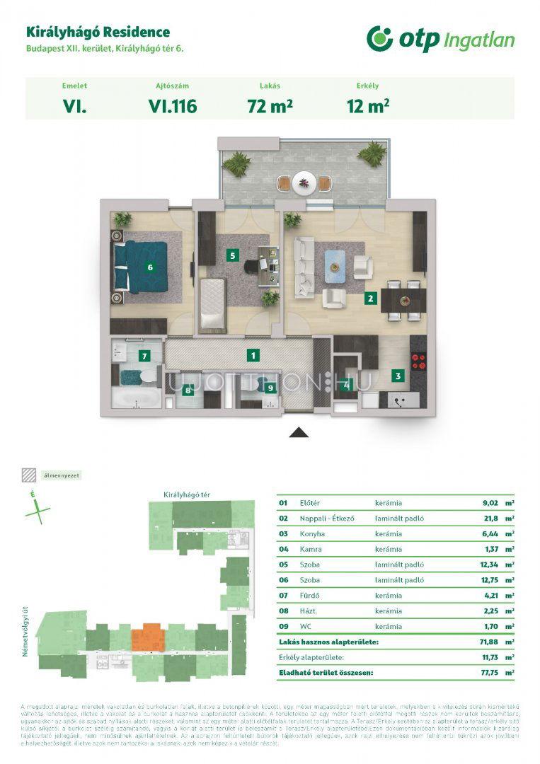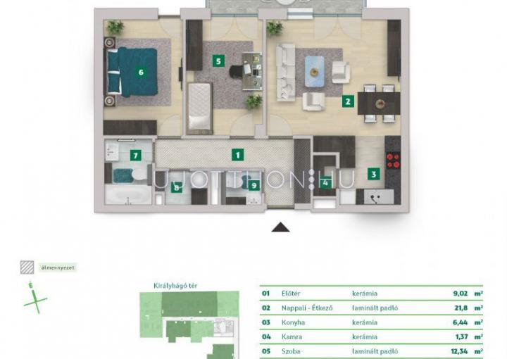 3 szobás 71 m2-es Lakás Királyhágó Residence - Budapest XII. kerület, Németvölgy, Királyhágó tér 6-7