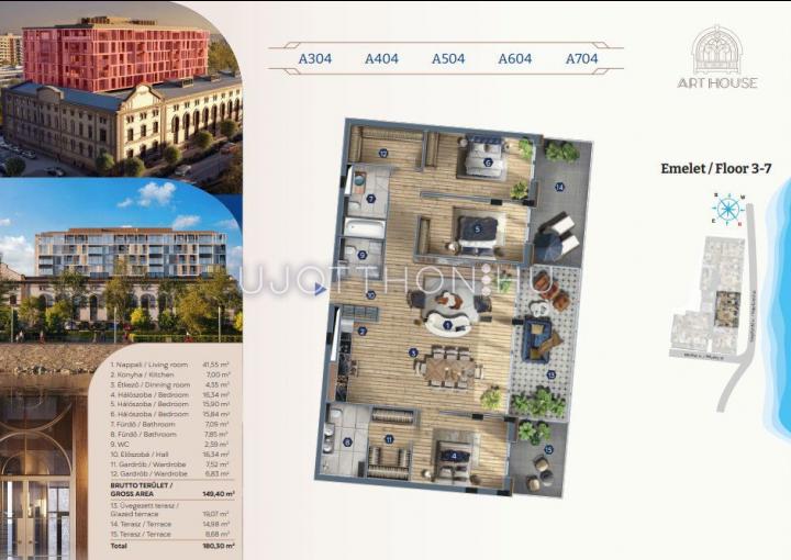 4 szobás 149 m2-es Lakás ART HOUSE - Budapest XIII. kerület, Vizafogó, Revész utca 18