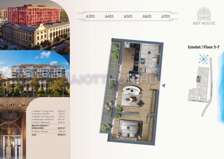 2 szobás 45 m2-es Lakás ART HOUSE - Budapest XIII. kerület, Vizafogó, Revész utca 18
