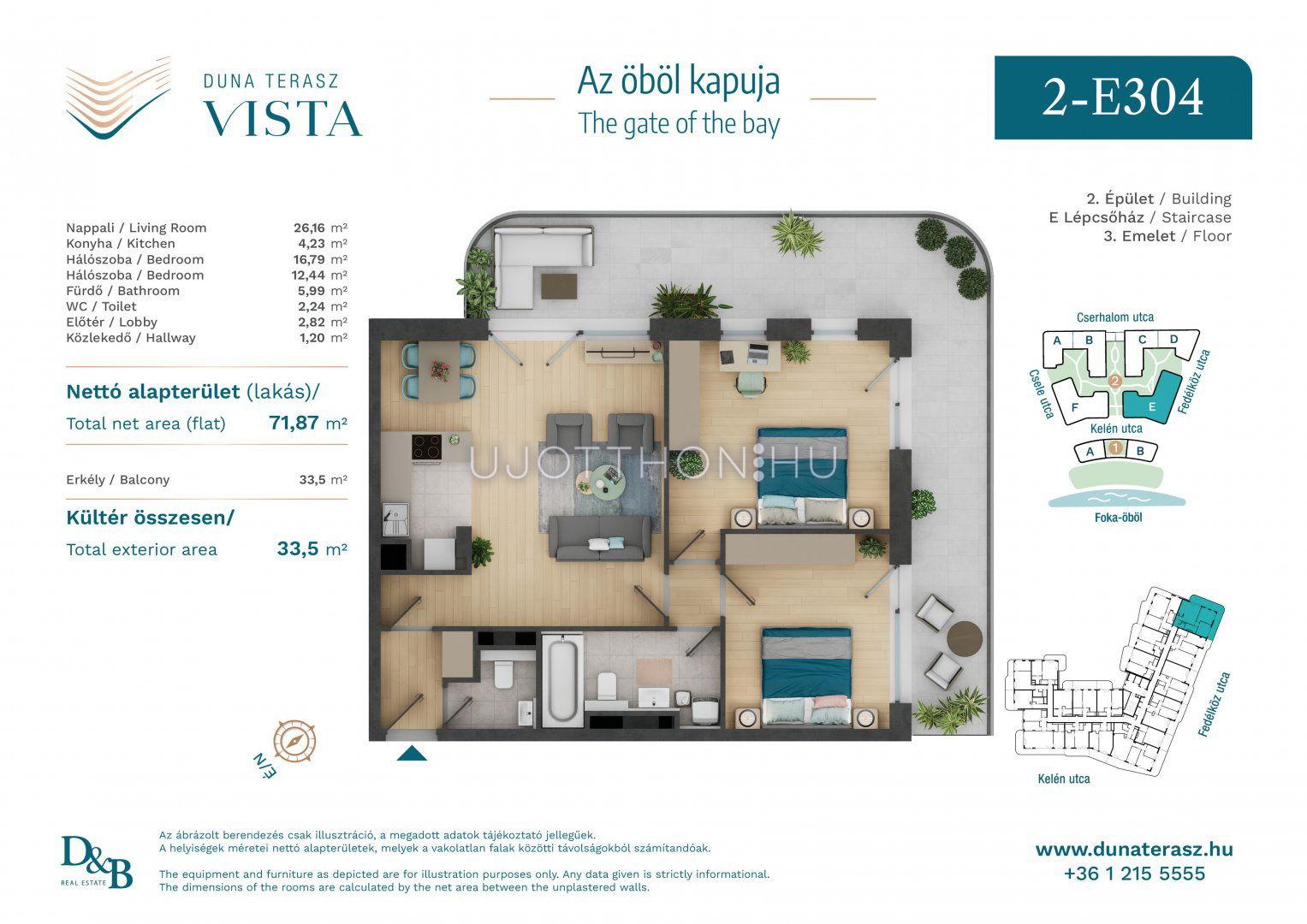 3 szobás 72 m2-es Lakás Duna Terasz Vista - Budapest XIII. kerület, Vizafogó, Cserhalom utca 4