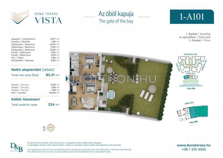 A Duna Terasz Vista Budapest egyik legzöldebb Duna-parti lokációjában épül, a XIII. kerületi Foka-öböl partján, közvetlenül a vízparton. A beruházás különlegessége, hogy számos lakása örökpanorámával rendelkezik majd, architektúrájában pedig olyan emblematikus megoldások jelennek meg, mint a hullámzó homlokzat vagy az öbölparti kapu. A környezet idillikus, vízparti életmódot biztosít a beköltözőknek, vízisportokkal, közeli hajókikötővel, illetve bizonyos lakásokból a lenyűgöző dunai panorámával, a családi otthont keresőknek és a befektetési célú vásárlóknak egyaránt.