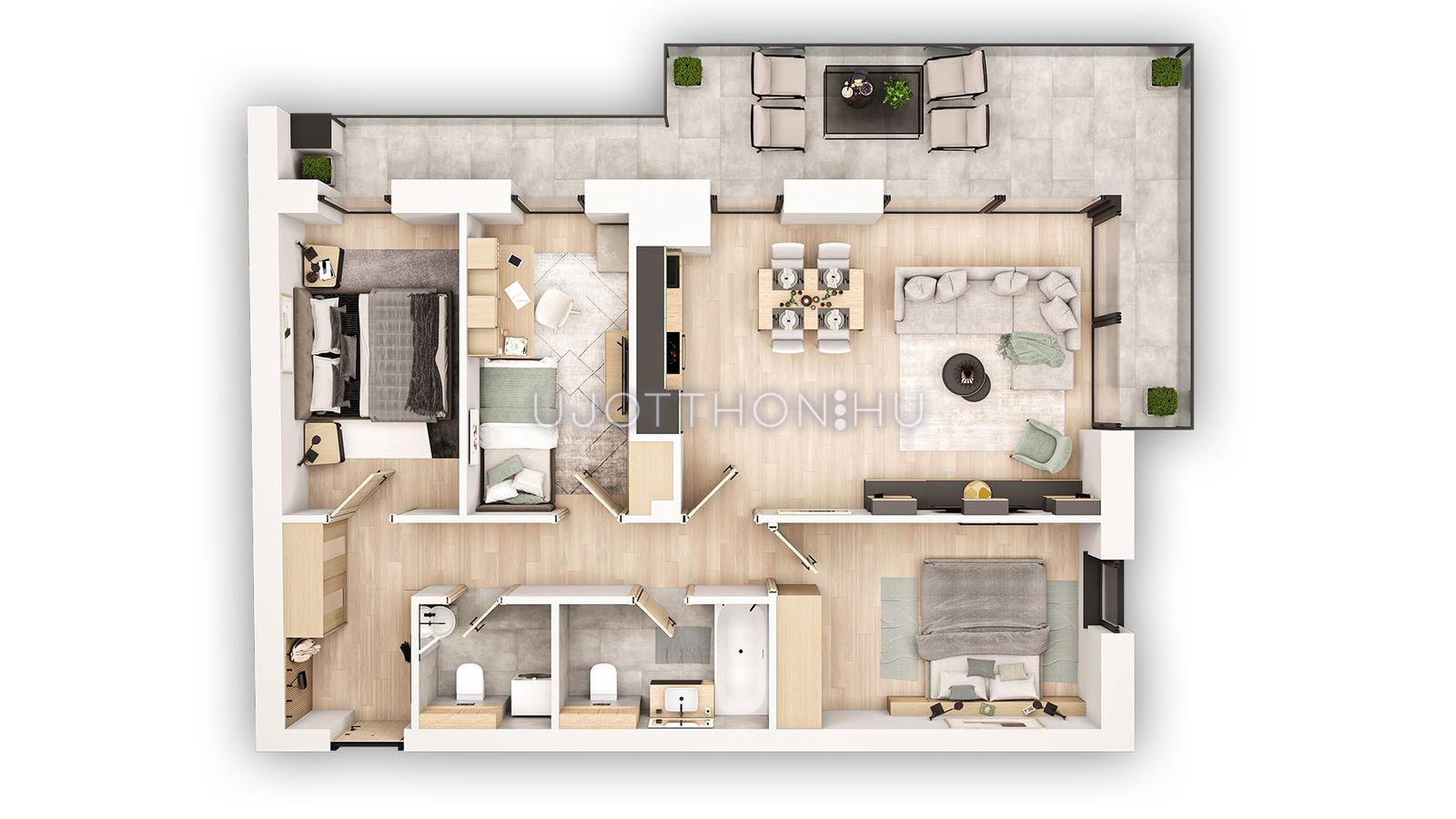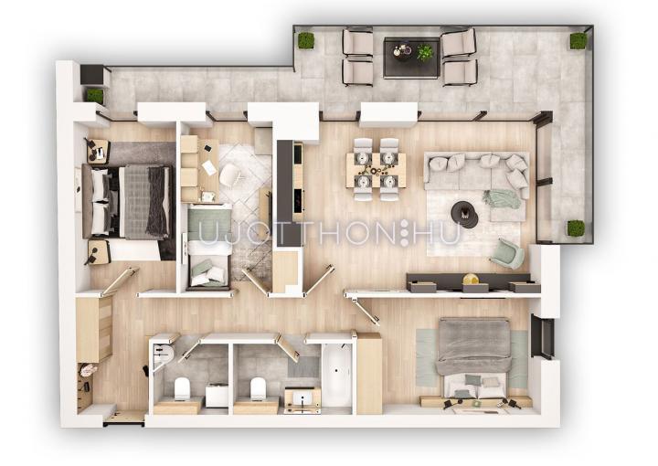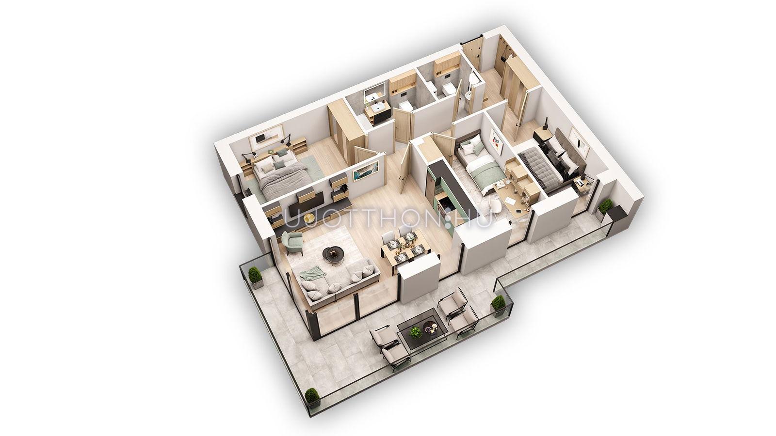 • Széles lakáskínálat: a praktikus garzonoktól a tágas, 4 szobás penthouse lakásokig