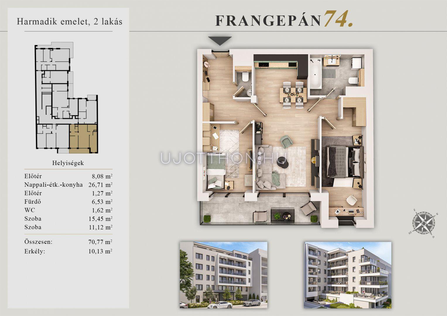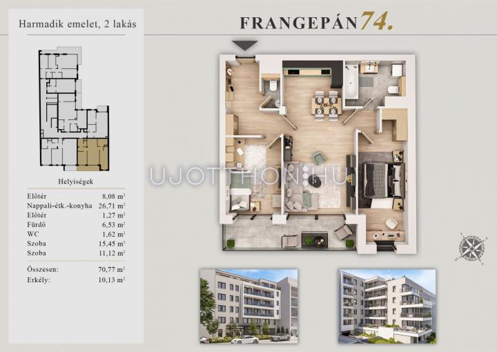 3 szobás 71 m2-es Lakás Frangepán 74 - Budapest XIII. kerület, Angyalföld, Frangepán utca 74