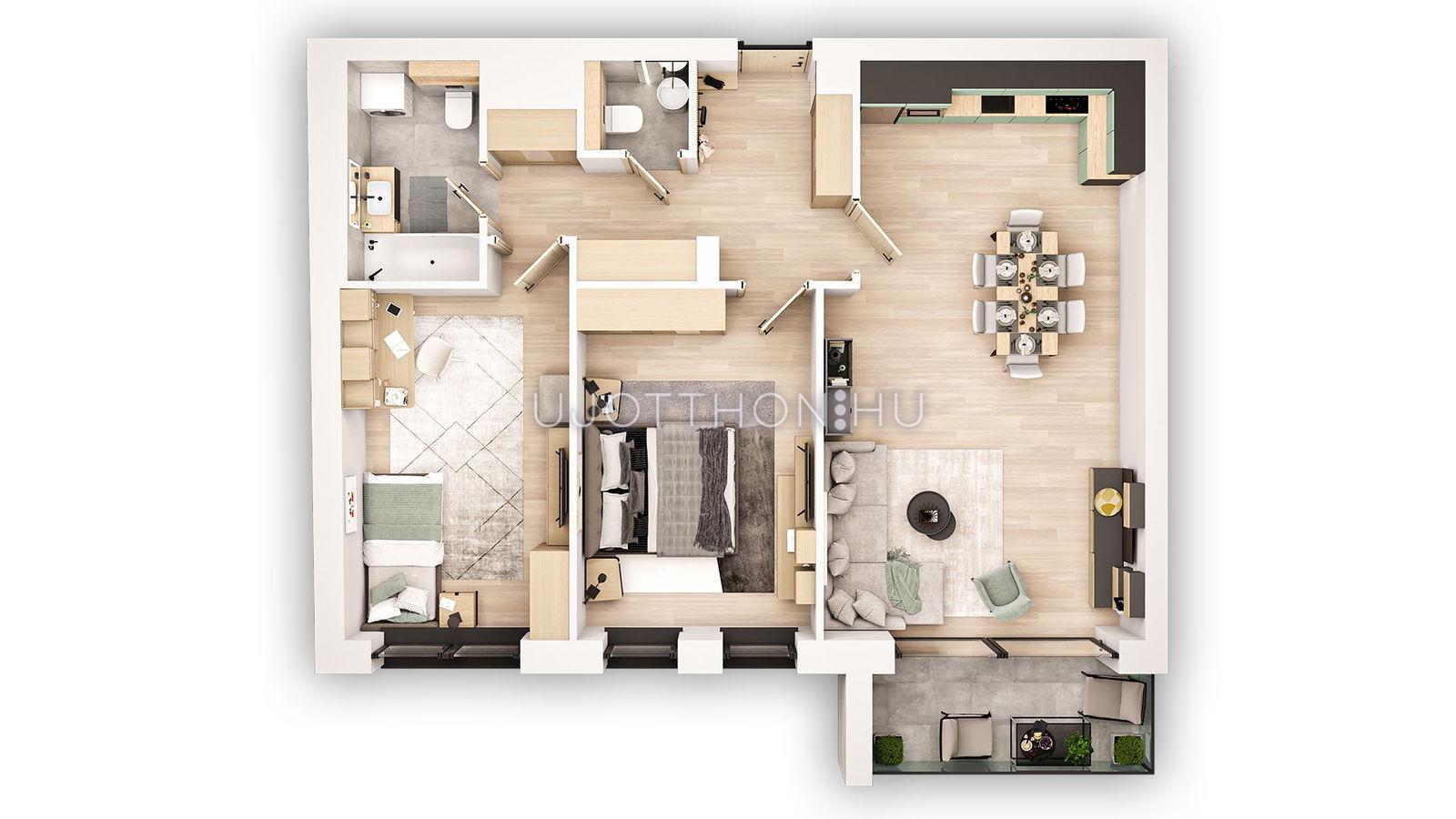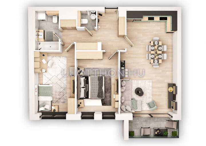 • Széles lakáskínálat: a praktikus garzonoktól a tágas, 4 szobás penthouse lakásokig