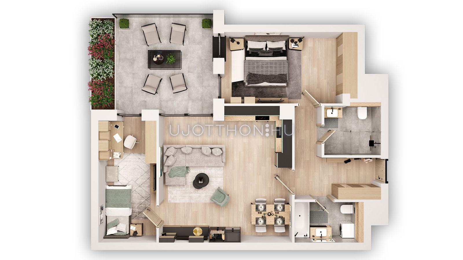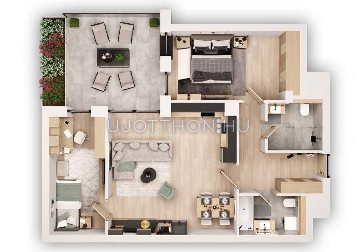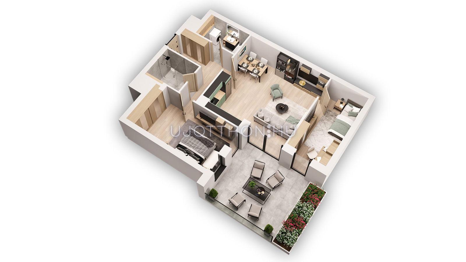 • Széles lakáskínálat: a praktikus garzonoktól a tágas, 4 szobás penthouse lakásokig