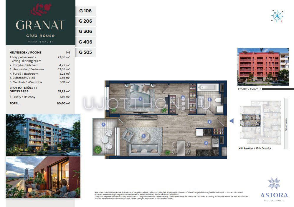 2 szobás 57 m2-es Lakás GRANAT club house by Astora - Budapest XIII. kerület, Reitter Ferenc utca 64.