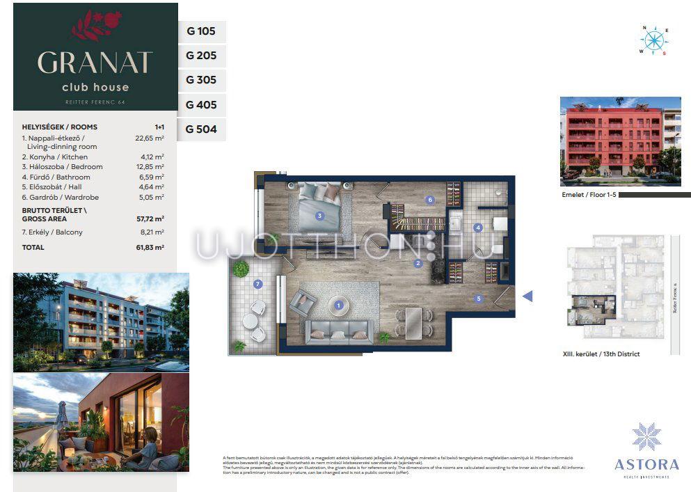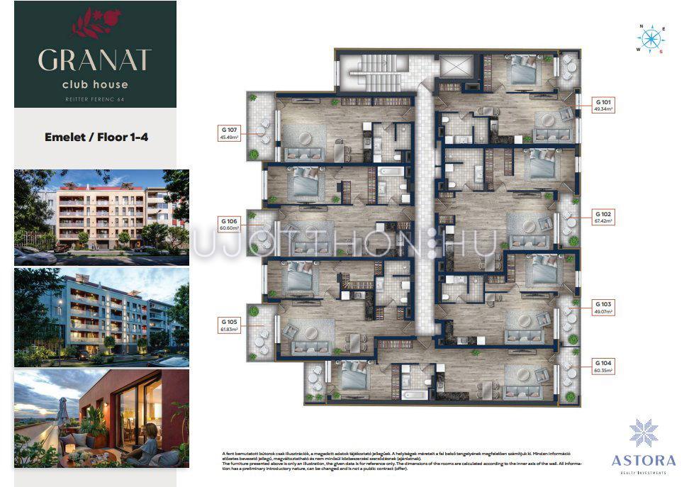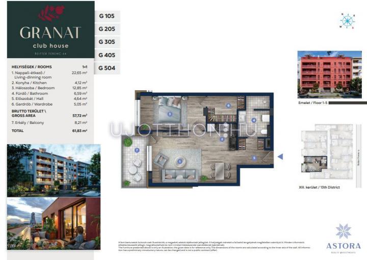 2 szobás 62 m2-es Lakás GRANAT club house by Astora - Budapest XIII. kerület, Reitter Ferenc utca 64.