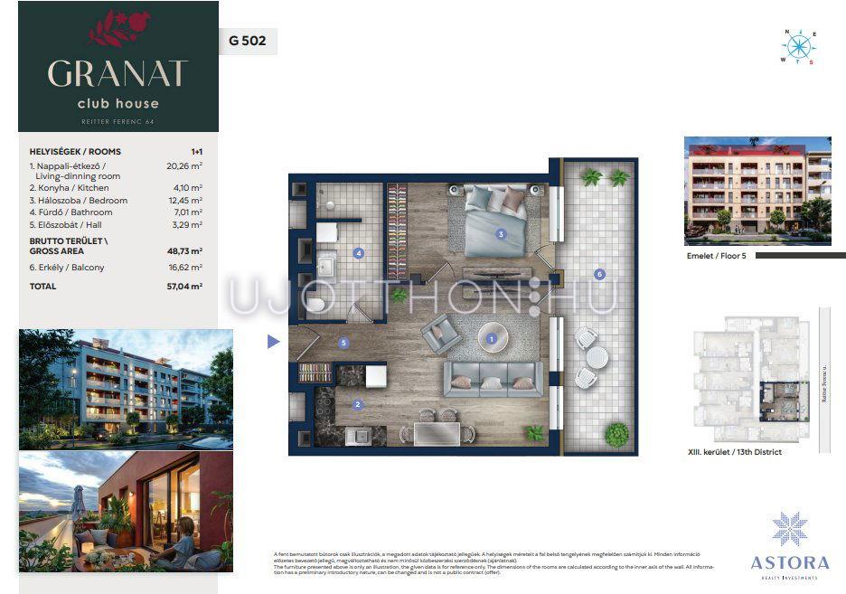 2 szobás 49 m2-es Lakás GRANAT club house by Astora - Budapest XIII. kerület, Reitter Ferenc utca 64.