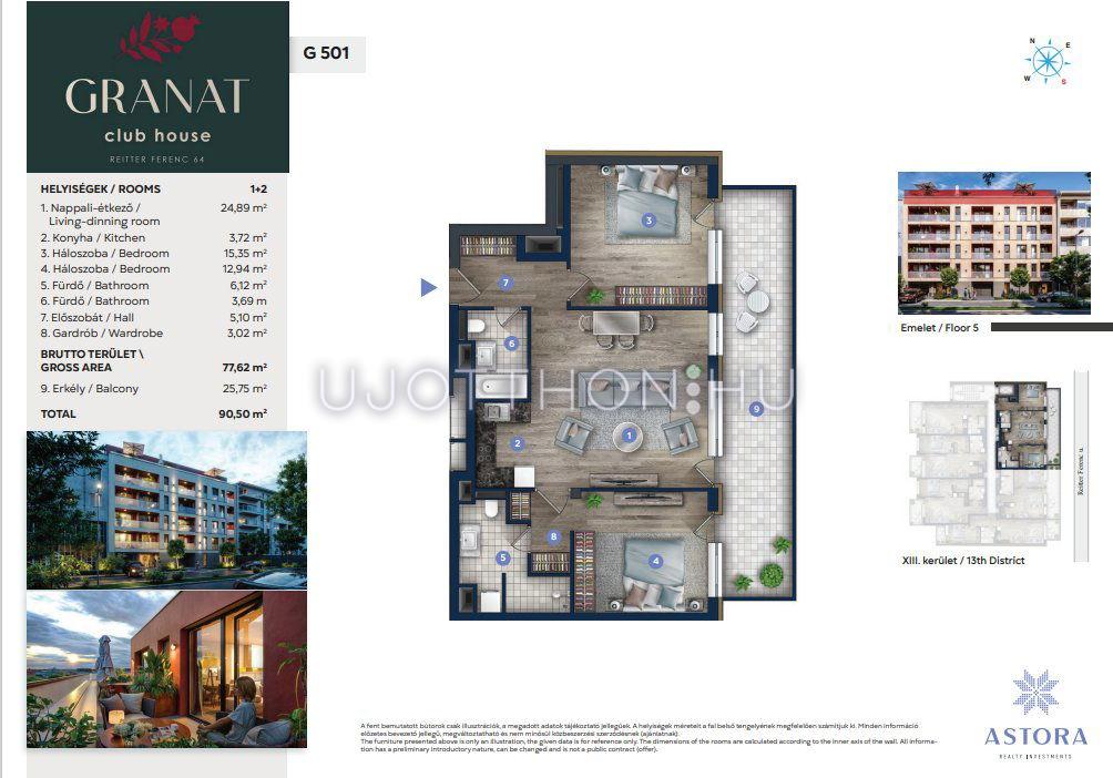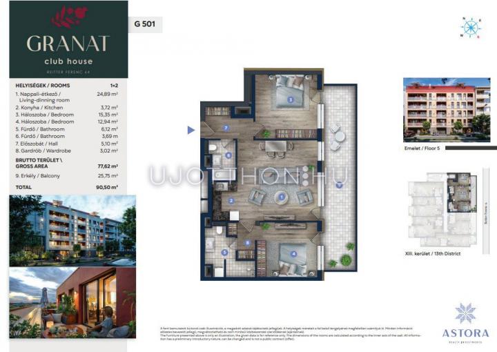 3 szobás 78 m2-es Lakás GRANAT club house by Astora - Budapest XIII. kerület, Reitter Ferenc utca 64.