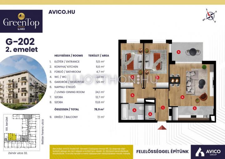 3 szobás 79 m2-es Lakás GreenTop - Budapest XIII. kerület, Angyalföld, Zsinór utca 30-34