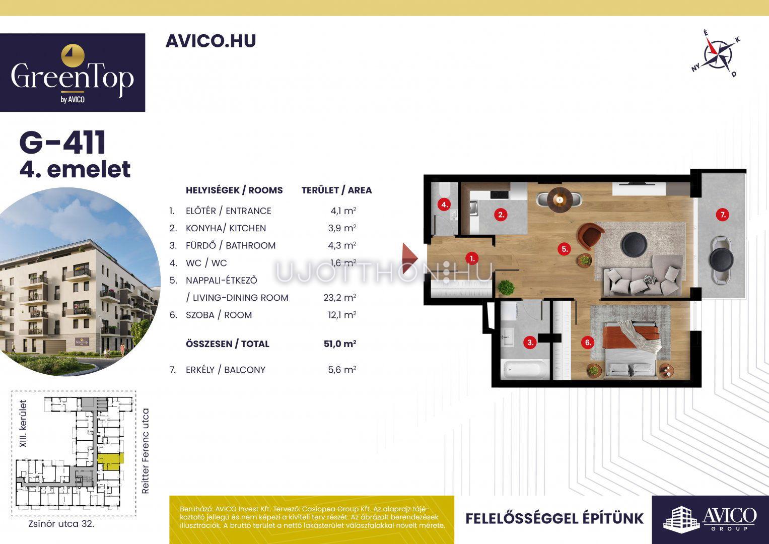 2 szobás 51 m2-es Lakás GreenTop - Budapest XIII. kerület, Angyalföld, Zsinór utca 30-34