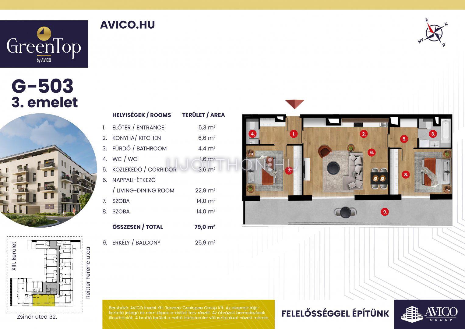 3 szobás 79 m2-es Lakás GreenTop - Budapest XIII. kerület, Angyalföld, Zsinór utca 30-34