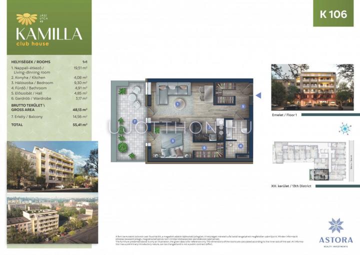 2 szobás 55 m2-es Lakás Kamilla Club House - Budapest XIII. kerület, Angyalföld, Jász utca 48