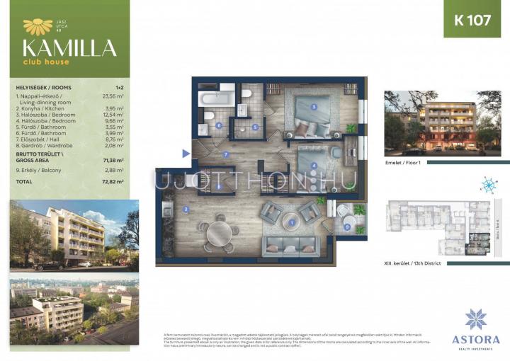 3 szobás 73 m2-es Lakás Kamilla Club House - Budapest XIII. kerület, Angyalföld, Jász utca 48