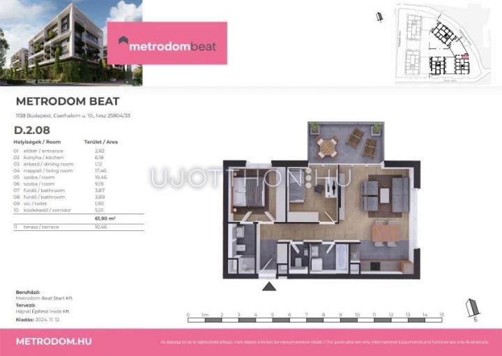 3 szobás 62 m2-es Lakás Metrodom Beat - Budapest XIII. kerület, Vizafogó, Turóc utca 10