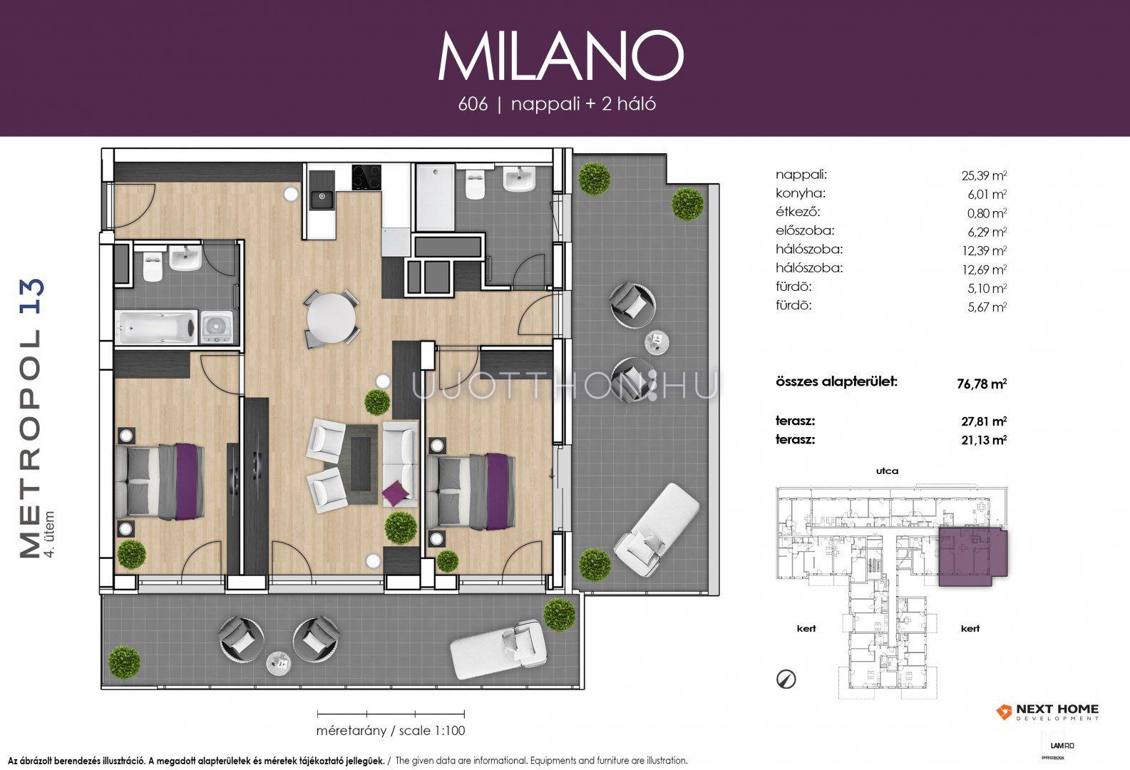 3 szobás 78 m2-es Lakás Metropol13 4. ütem - Budapest XIII. kerület, Lehel utca 27.