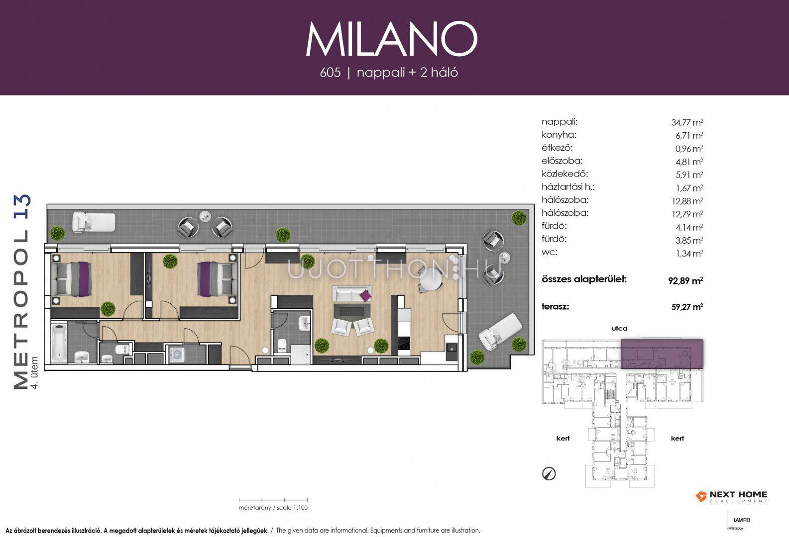 3 szobás 93 m2-es Lakás Metropol13 4. ütem - Budapest XIII. kerület, Lehel utca 27.
