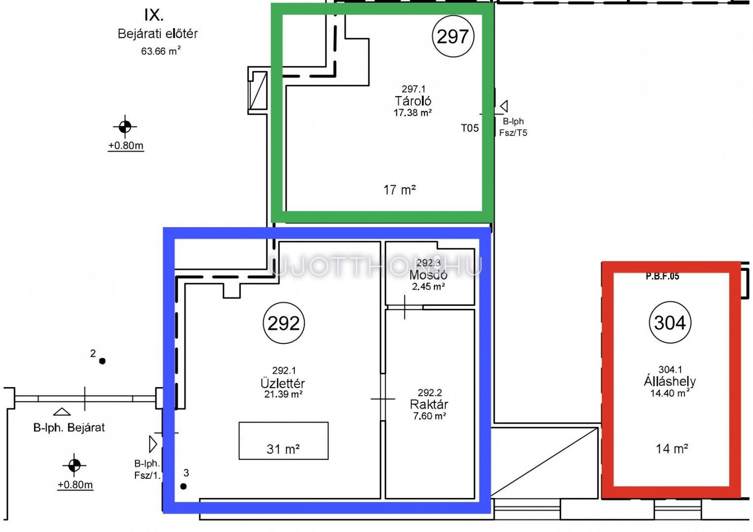 Tároló: 17 m2 (egybe nyitható az üzlettel)