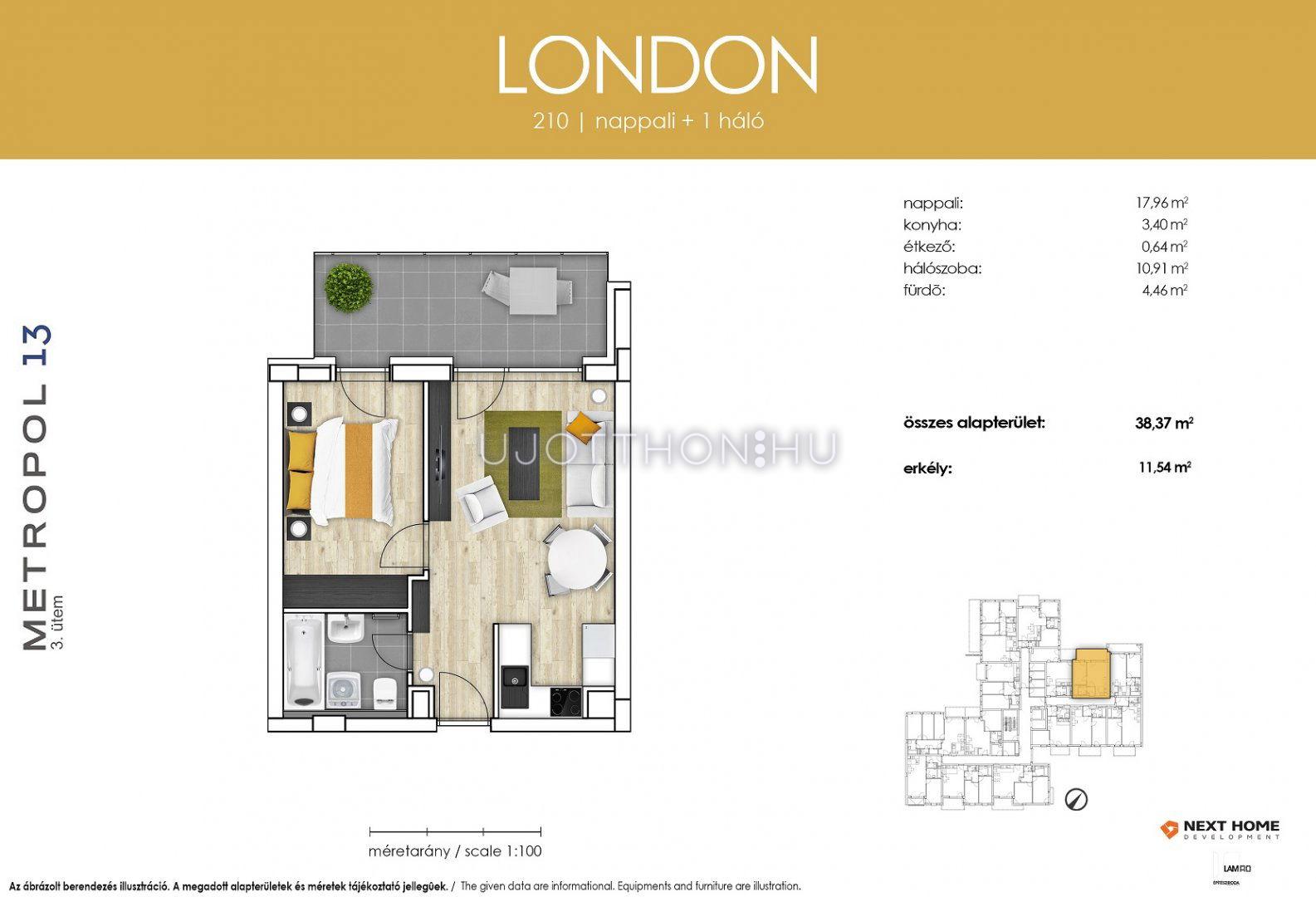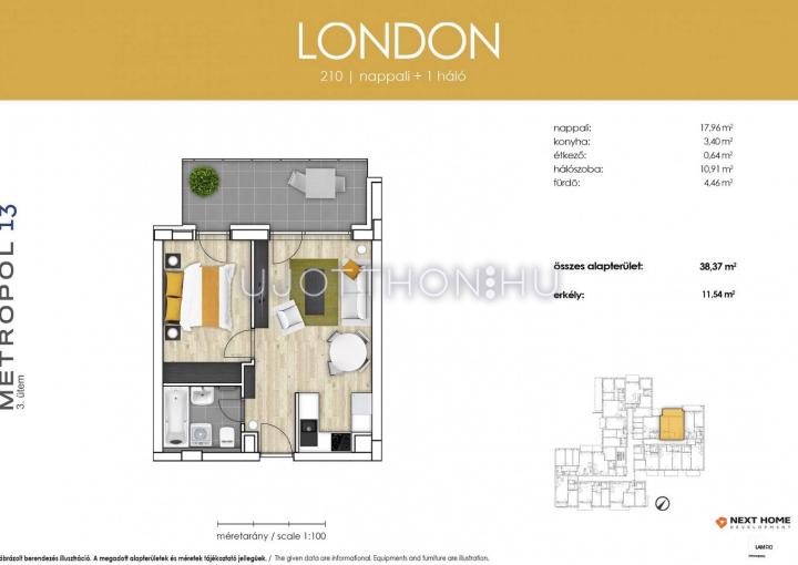 2 szobás 38 m2-es Lakás Metropol13 4. ütem - Budapest XIII. kerület, Lehel utca 27.