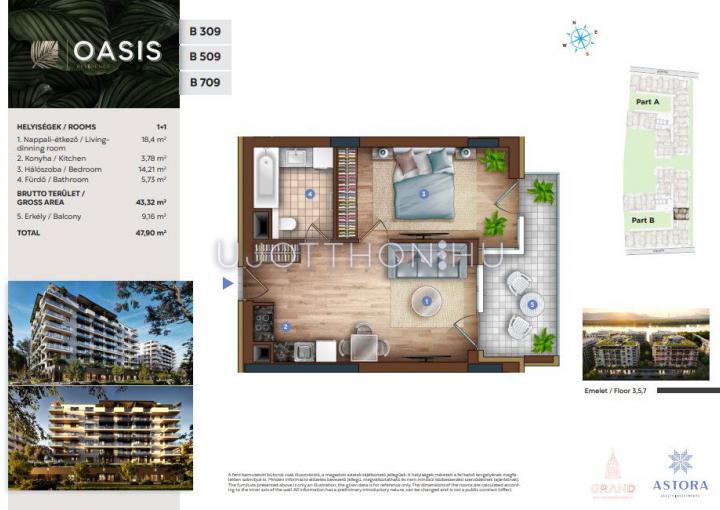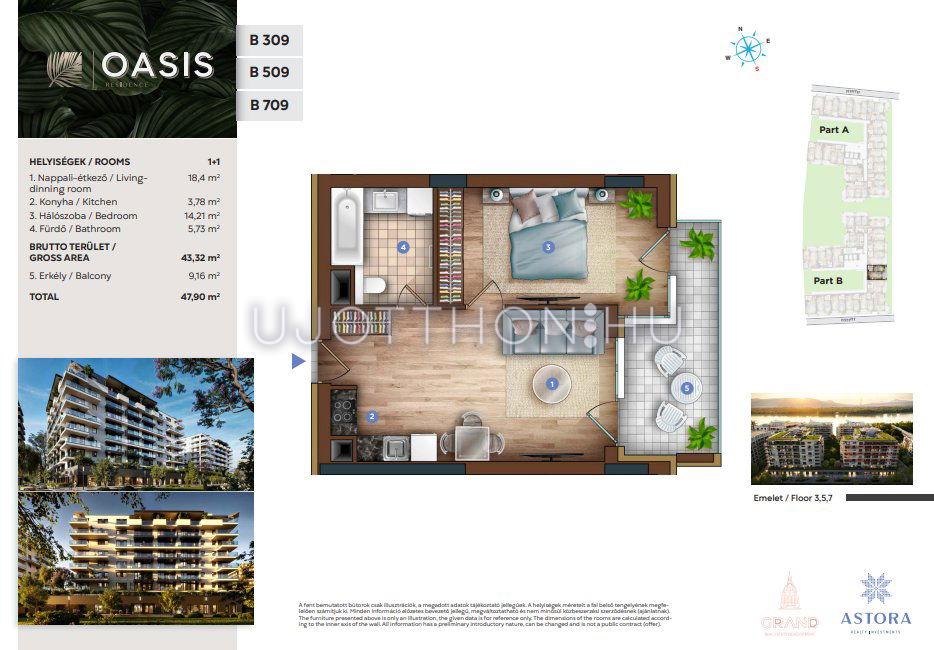 2 szobás 43 m2-es Lakás OASIS Residence - Budapest XIII. kerület, Vizafogó, Sólyatér utca 15