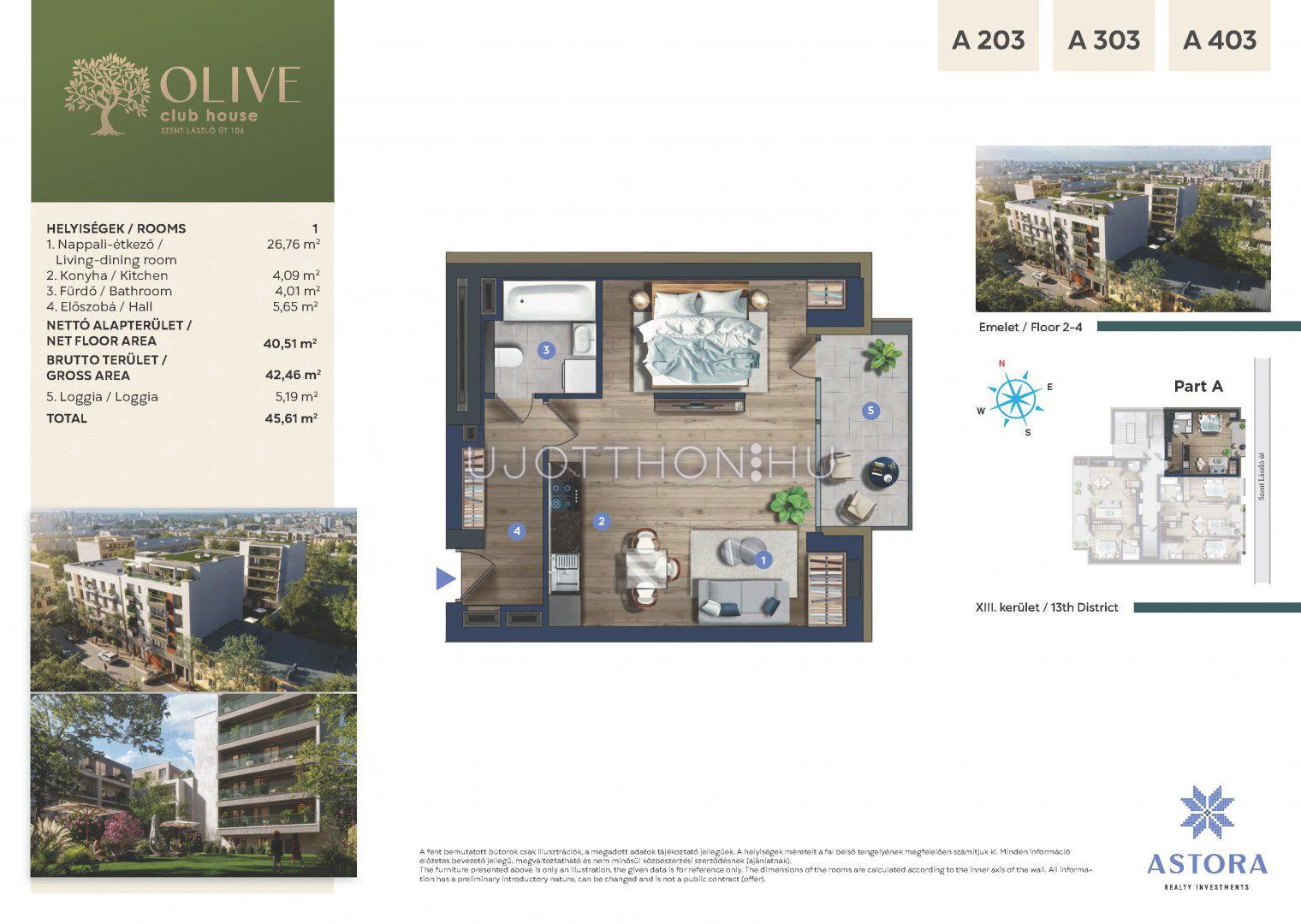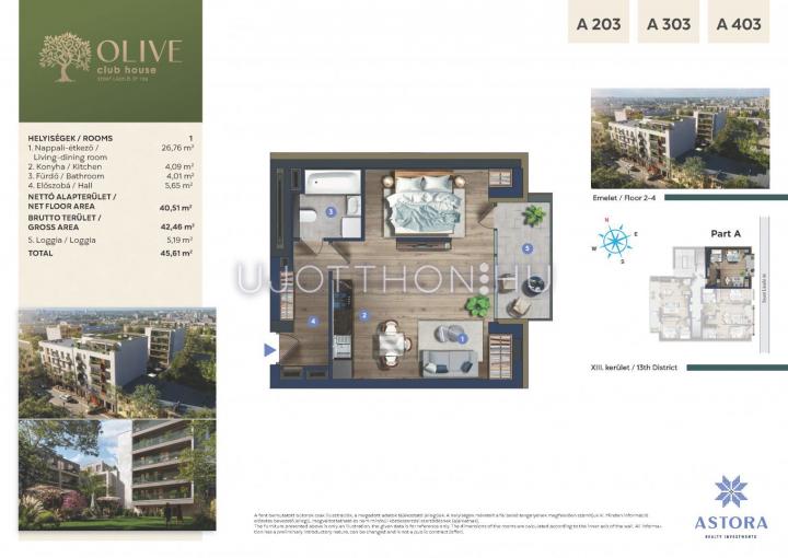 1 szobás 42 m2-es Lakás OLIVE Club House by Astora - Budapest XIII. kerület, Angyalföld, Szent László út 106