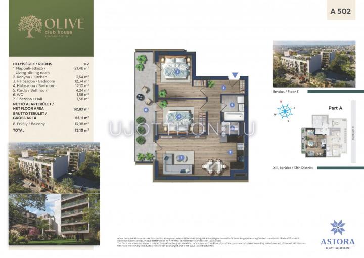 3 szobás 65 m2-es Lakás OLIVE Club House by Astora - Budapest XIII. kerület, Angyalföld, Szent László út 106