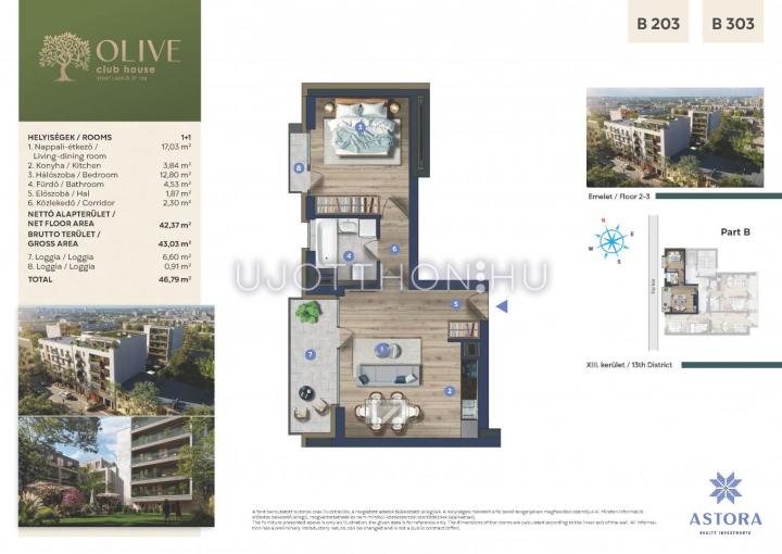 2 szobás 43 m2-es Lakás OLIVE Club House by Astora - Budapest XIII. kerület, Angyalföld, Szent László út 106