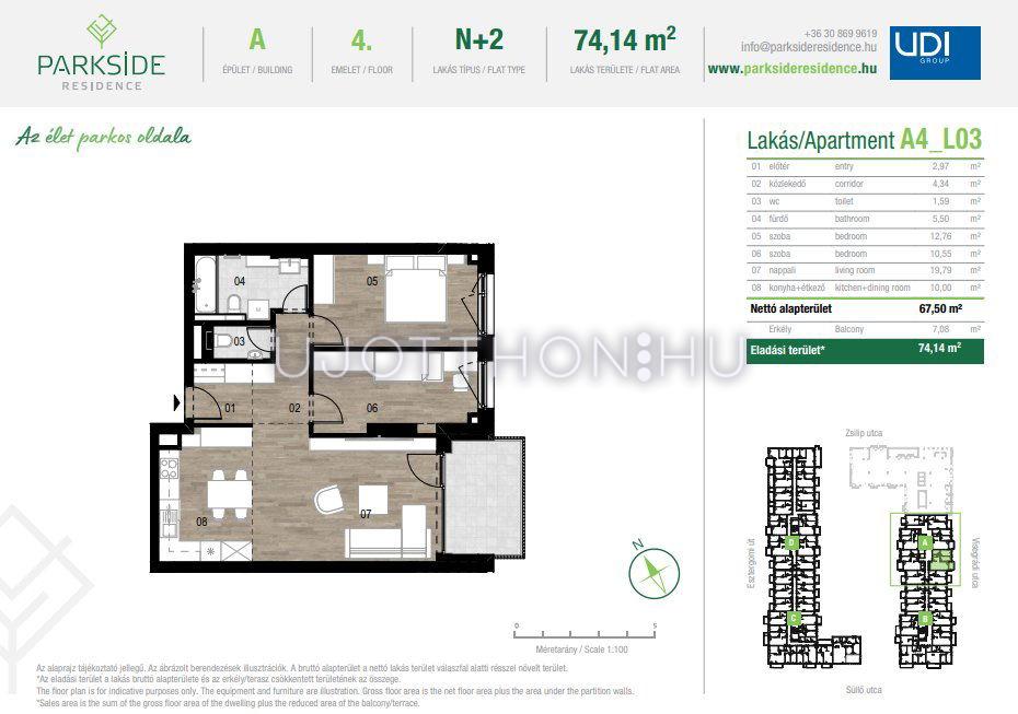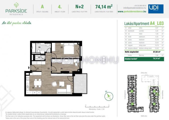 3 szobás 68 m2-es Lakás Parkside Residence - Budapest XIII. kerület, Vizafogó, Visegrádi utca 116
