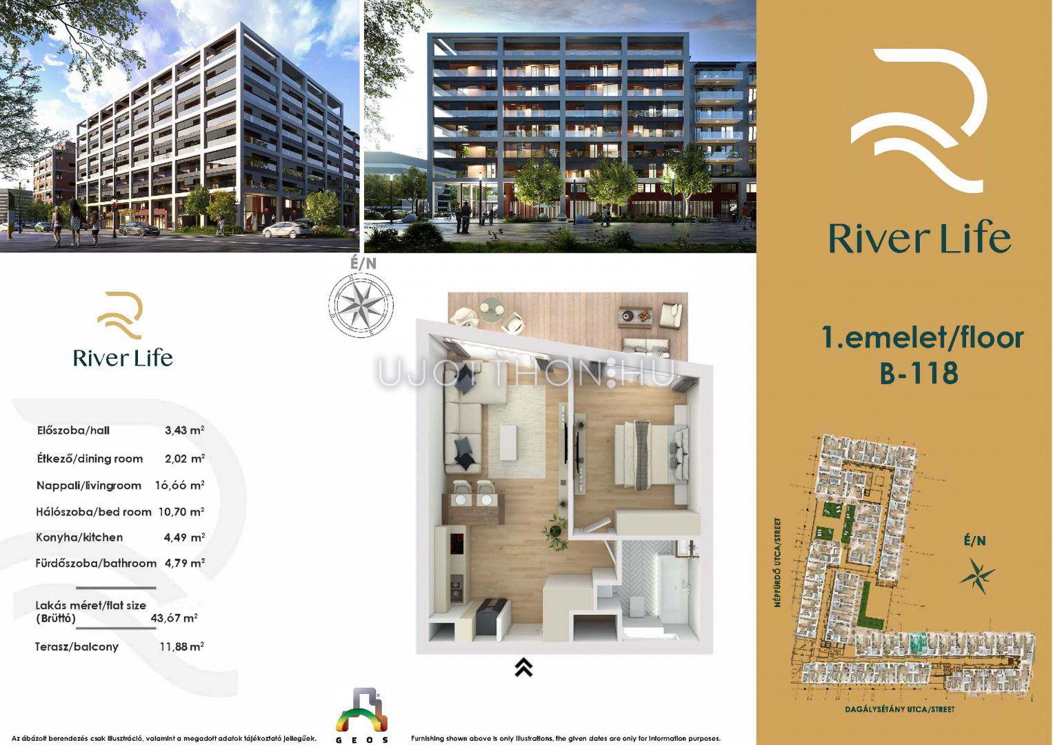 2 szobás 44 m2-es Lakás River Life - Budapest XIII. kerület, Vizafogó, Népfürdő utca 47
