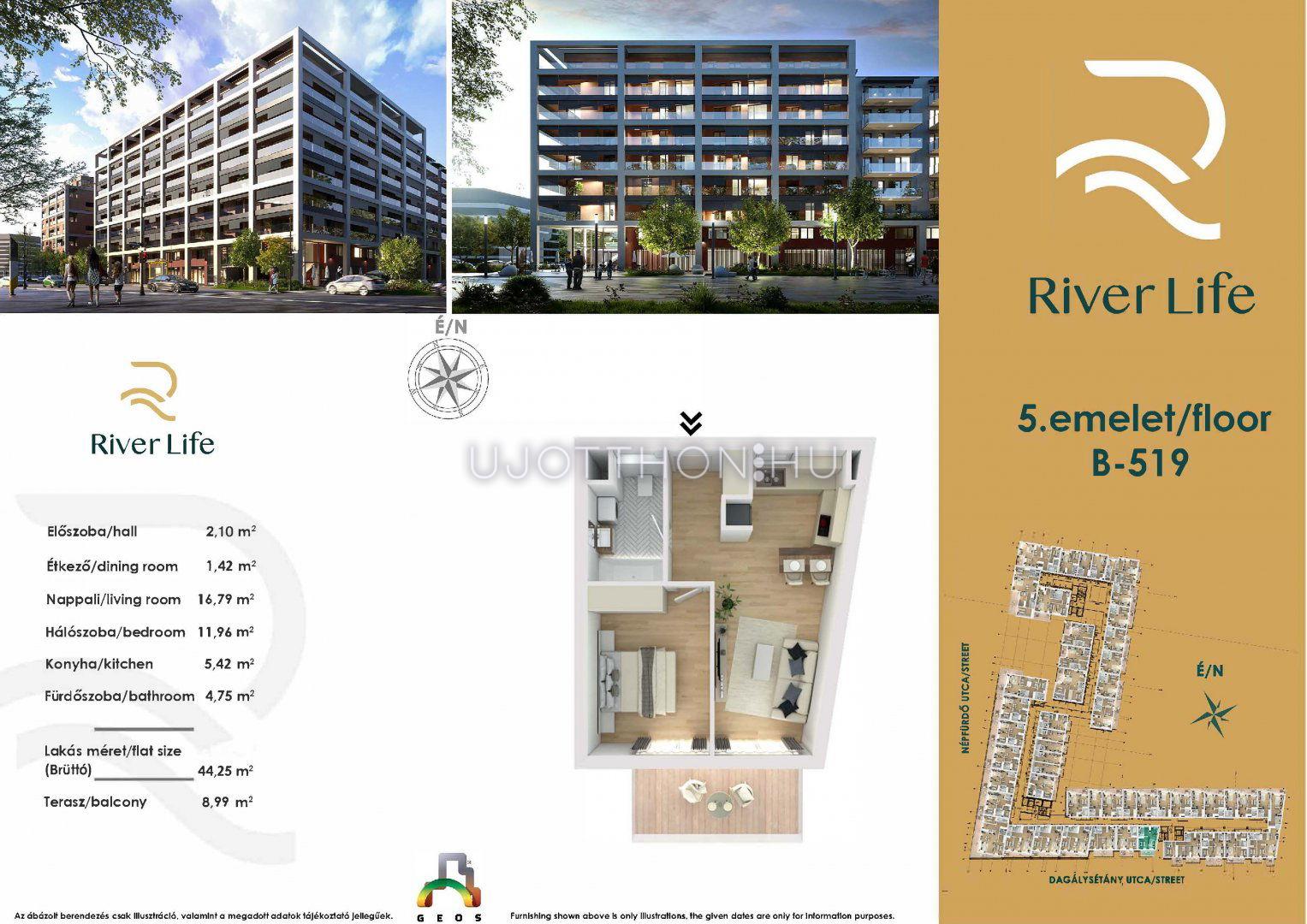 1 + 1 félszobás 44 m2-es Lakás River Life - Budapest XIII. kerület, Vizafogó, Népfürdő utca 47