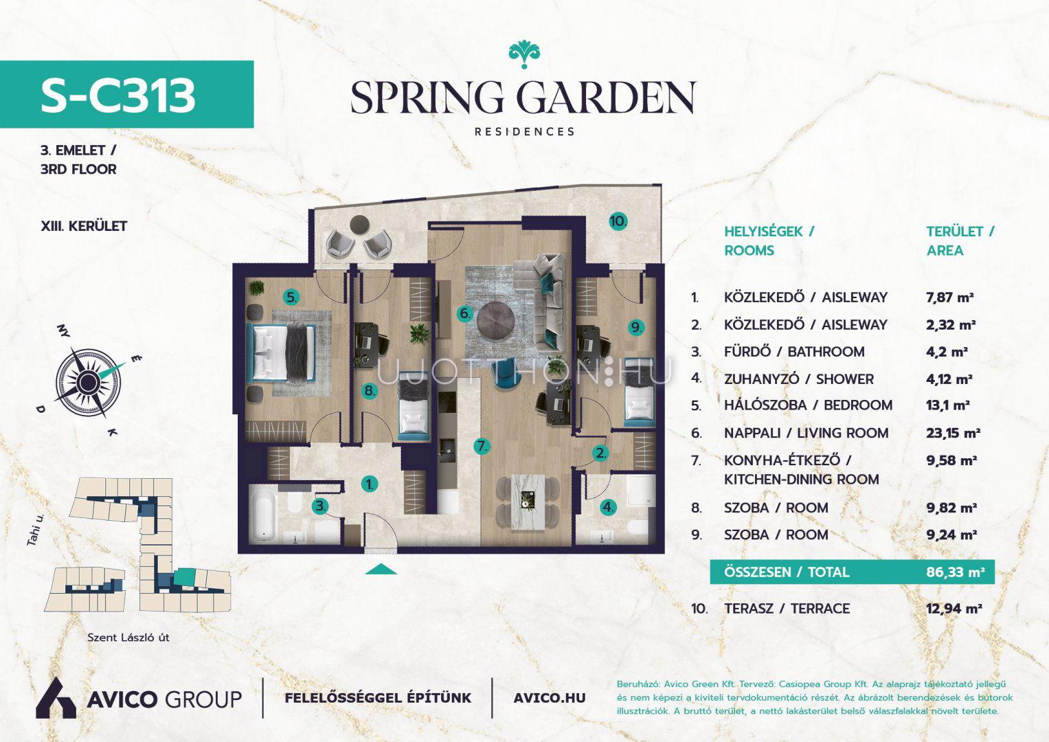 A XIII. kerület egyre fejlődő részén, Angyalföldön kerül megépítésre Társaságunk legújabb fejlesztése a „SPRING GARDEN” fantázianevű lakóegyüttes, mely a Szent László út csendes, kisvárosias övezetében található 218 lakásos társasház. A Rákos-patak mentén végig futó zöld sáv, illetve a Városliget relatív közelsége számos kikapcsolódási lehetőséget biztosít.