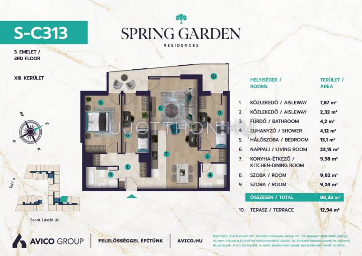 4 szobás 86 m2-es Lakás Spring Garden - Budapest XIII. kerület, Angyalföld, Szent László utca 120-126