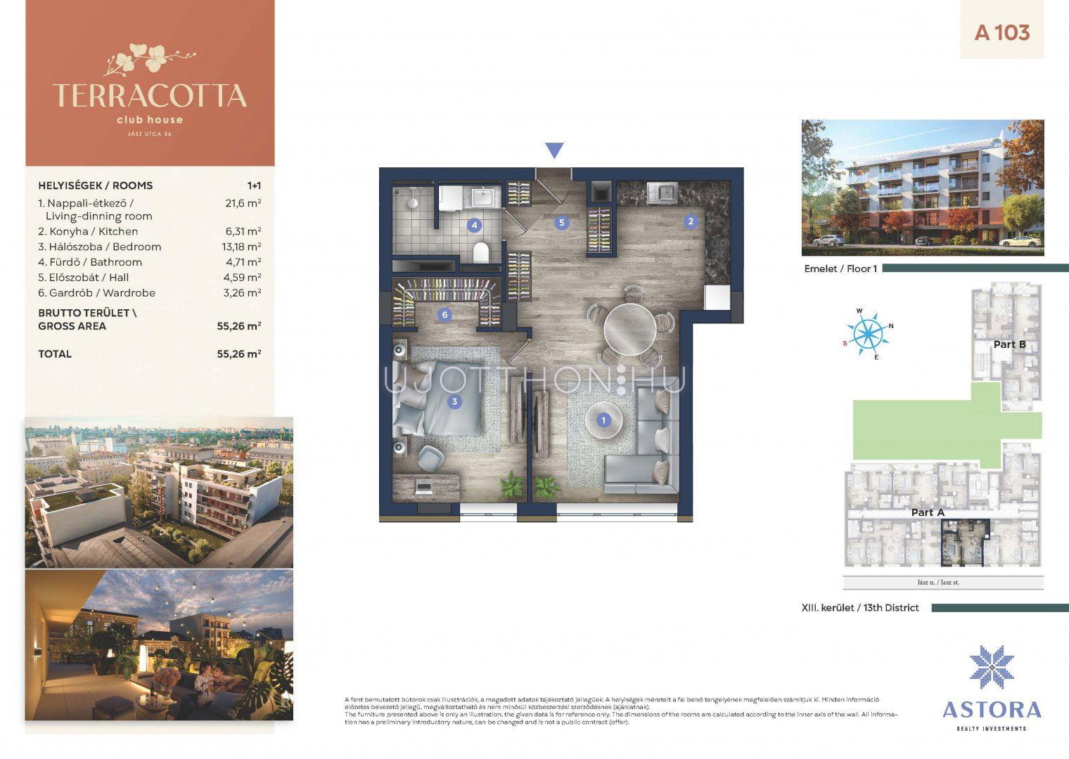 2 szobás 54 m2-es Lakás Terracotta Club House - Budapest XIII. kerület, Angyalföld, Jász utca 56