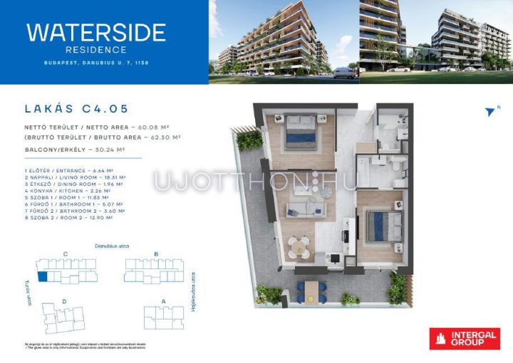 3 szobás 62 m2-es Lakás Waterside Residence - Budapest XIII. kerület, Vizafogó, Danubius u. 7