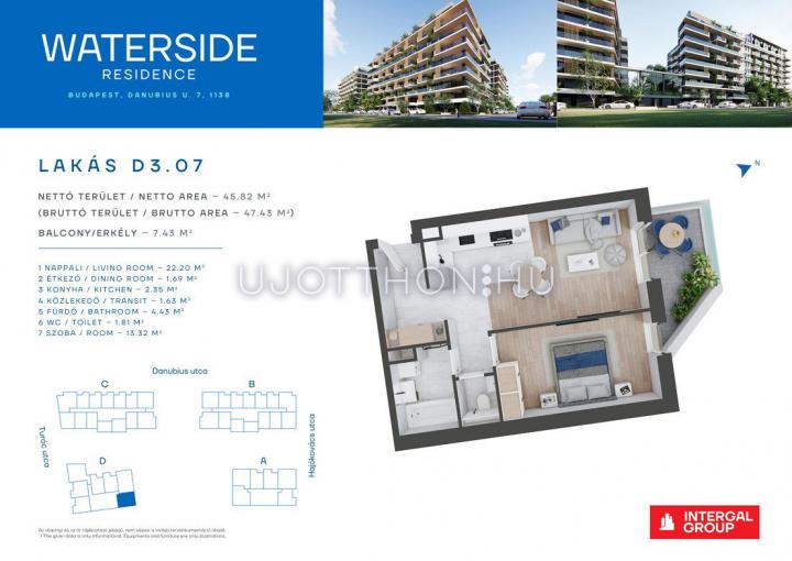 2 szobás 49 m2-es Lakás Waterside Residence - Budapest XIII. kerület, Vizafogó, Danubius u. 7